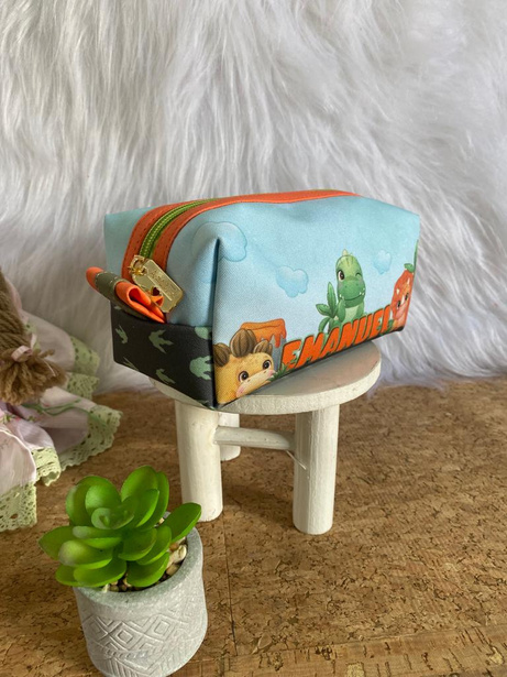 Projeto recorde de vendas em meu ateliê, com arte externa e internamente com lousa em tecido e bolso para giz, desenhos, etc.